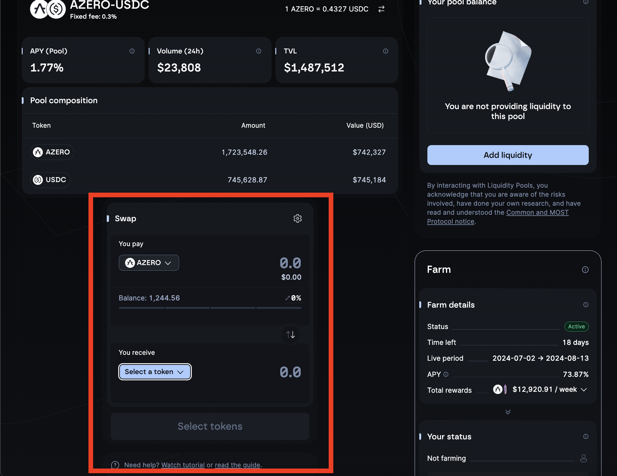 I would like to see swap block inside pool details. This is correct place where everything related to that pool should be. There are a lot of space to add it. Example below